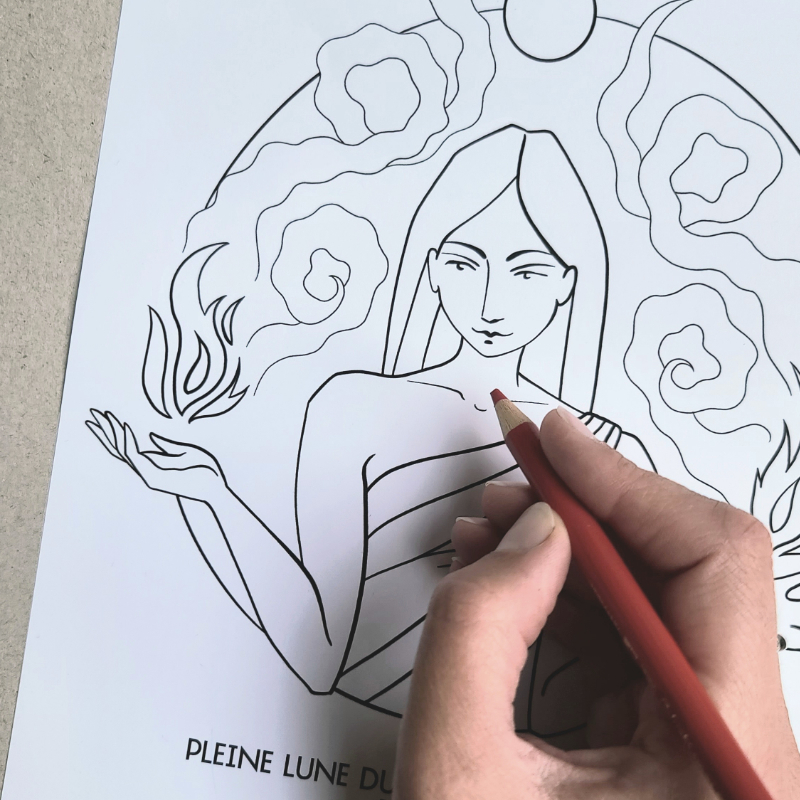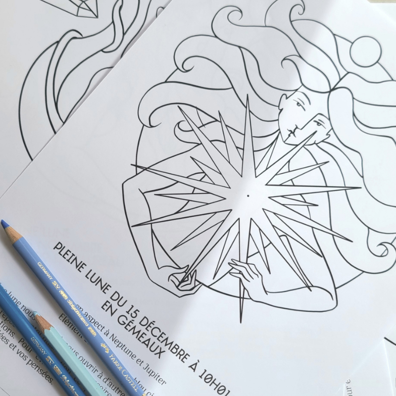 Instagram collaboration, coloring illustrations based on astrological analyses x @baladeauclairdelune